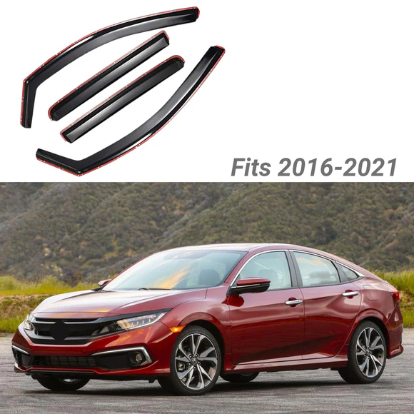 Fits 2016-2021 Honda Civic Sedan In-Channel Vent Window Visors Rain Sun Wind Guards Shade Deflectors (Set of 4 pcs)