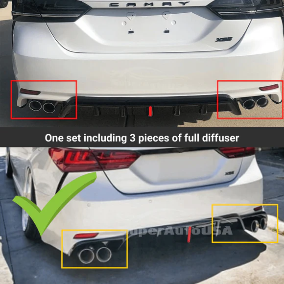 Fit 2018-2024 Toyota Camry TRD Style Rear Bumper Spoiler Diffuser Splitters Corners Set